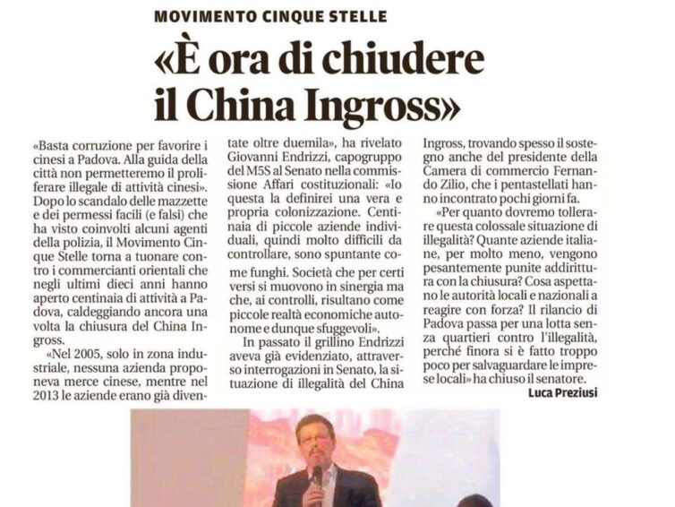 Come già denunciato in diverse occasioni la situazione del China Ingross di Padova è diventata insostenibile, a causa di sequestri frequenti di merce irregolare o addirittura nociva. Ieri spuntano poi […]